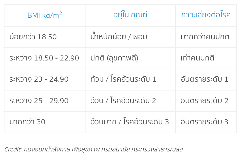 วิธีคำนวณดัชนีมวลกาย BODY MASS INDEX (BMI)